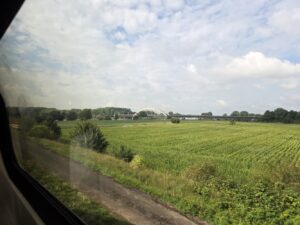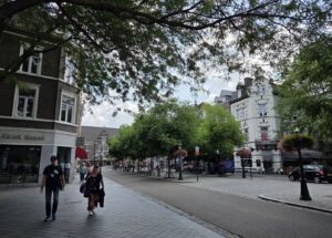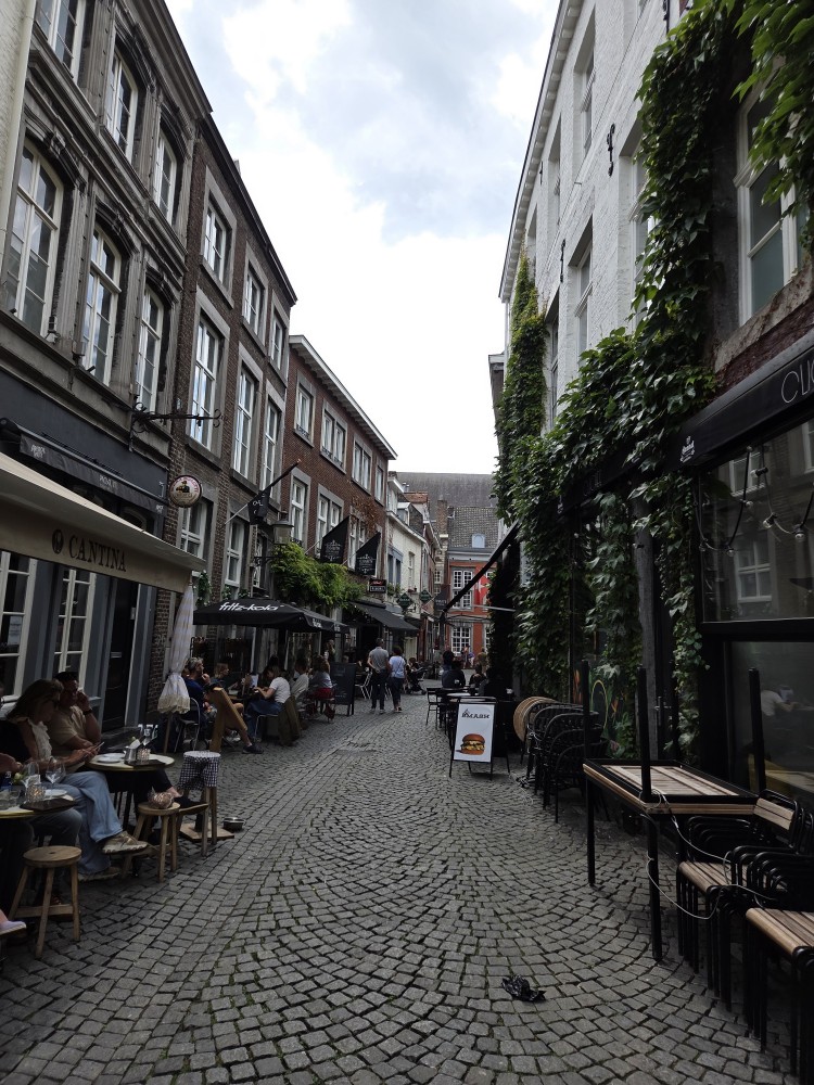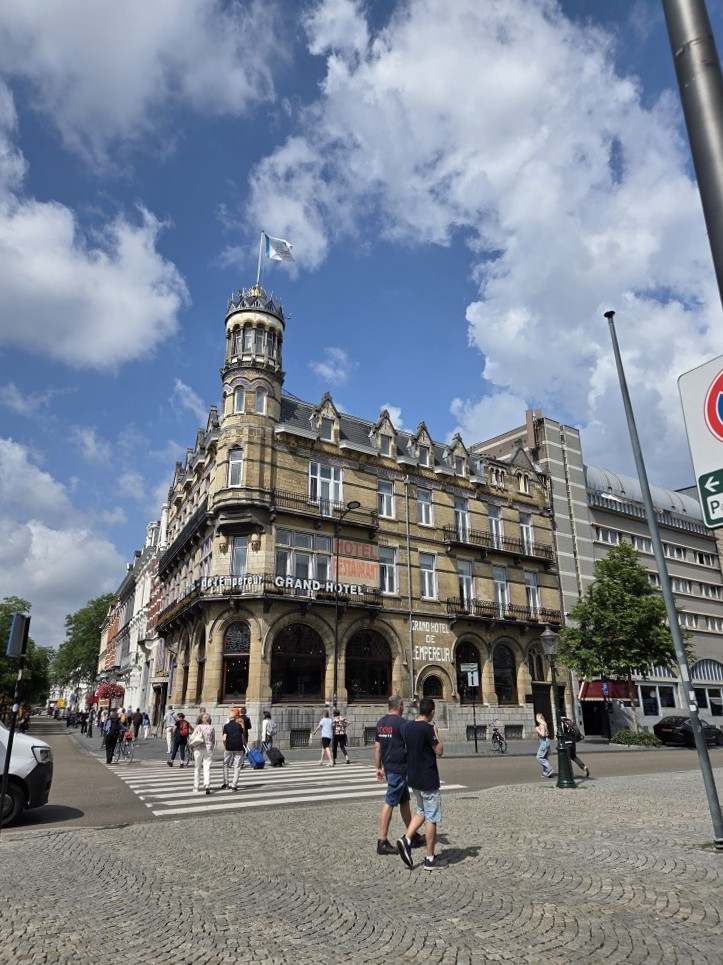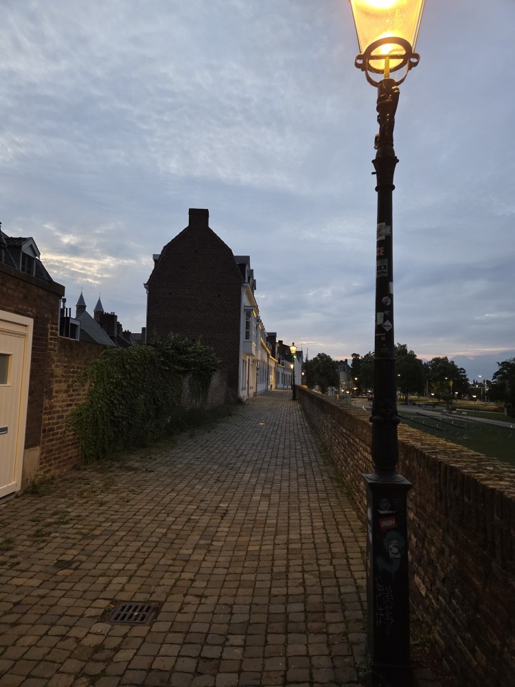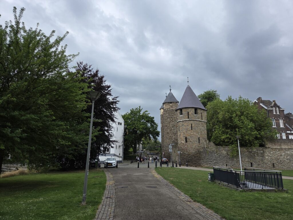 We took the train down to Maastricht, it took a few hours but hey I had fanfic on my phone. Also I kept bringing my noise-cancelling headphones on the train, and we each used them once or twice through my whole visit – Tharash said the effect for him was that everything was still audible but much further away, which was still good – but I don’t think I brought them this time as I needed space for clothes and stuff; we were just bringing little backpacks.