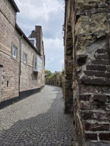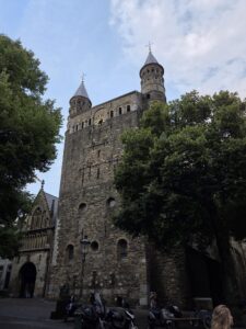 Then we walked through the old city, and everything about it was fascinating! Since Limburg is NOT below sea level, it doesn’t need drainage canals. And since it is not built on an ancient grid of drainage canals, there is no rhyme nor reason to its street layout! I was horribly lost the entire first day lol. But Tharash led me to a former monastery which turned out to hold the mosasaur museum.