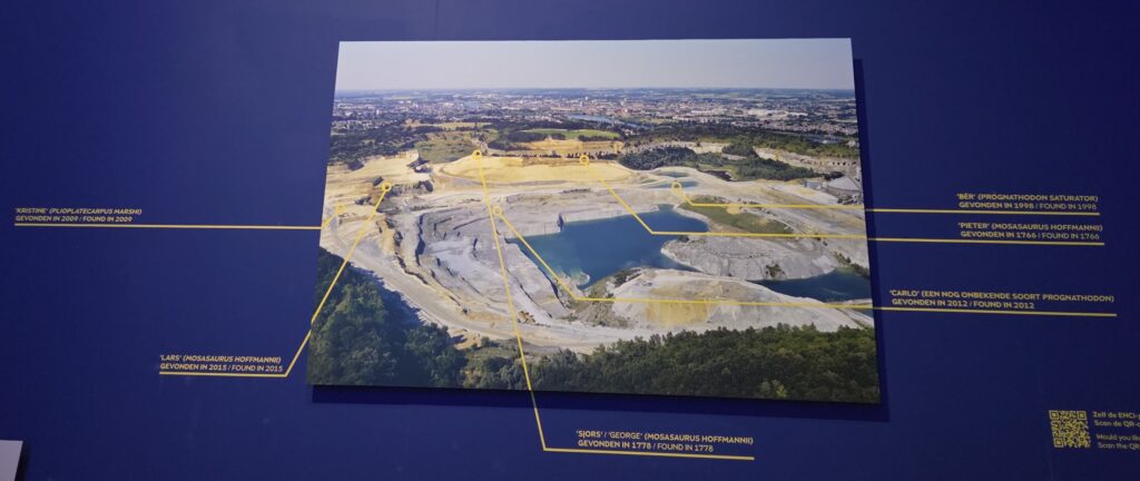In the quarry they’ve discovered many mosasaurs, and lots of stuff from the cretaceous period, and some of the carboniferous, but not so much other time periods due to the cycles of ocean sediment deposition and land erosion. If I understood correctly. Fun geological fact: Europe is tilting, I suppose from pressure from the south, and the Alps are still rising… which means the Netherlands are still falling. The pivot point is around a small town just north of Maastricht.