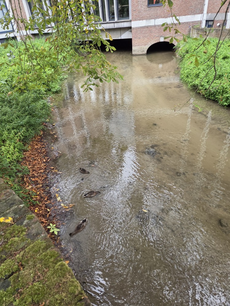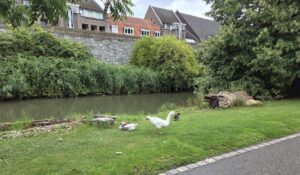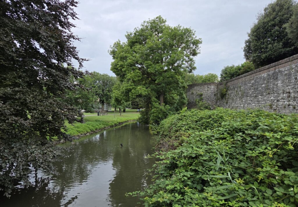 Then out we headed again! There were so many geese and ducks and Canada geese in the old moat. We seemed to be passing through some of the oldest part of the old town, so of course I wanted to take pictures of every centimetre of every historic building. Tharash gave me a teasing hard time for it, because he wanted to get to a certain café that sold Vlaai – Limburg fruit pie with lattice top. His parents had bought a vlaai or two in the previous week, but said it wasn’t the same as real Limburg vlaai. And the Bisschopsmolen (Bishop’s Mill) café is particularly famous for its vlaai.