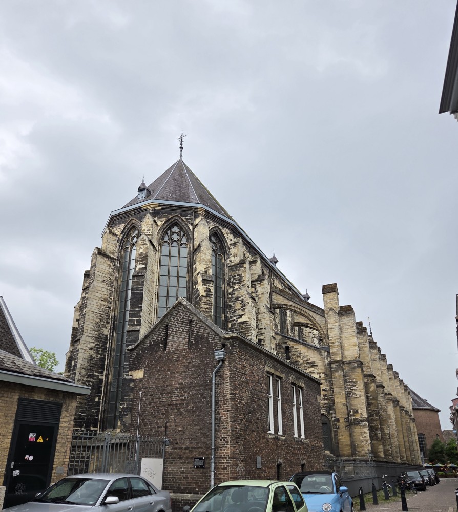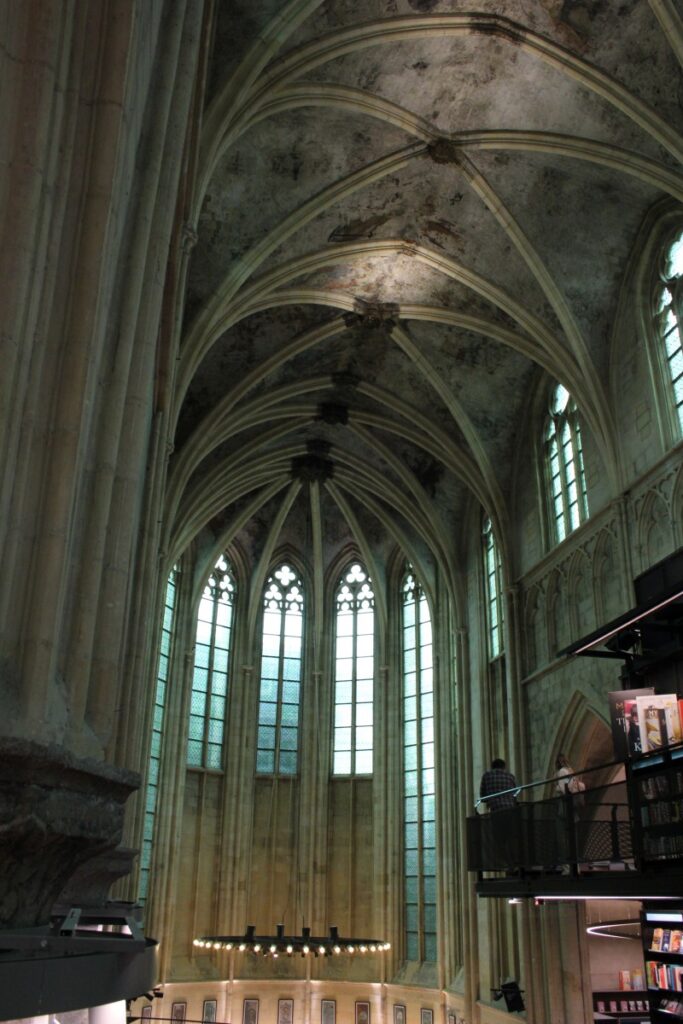 Then we went to the other church-related tourist attraction, Dominicanen Boekhandel (bookstore) which is a great big bookstore in a converted church! They’ve put up multiple floors in order to take advantage of the vertical space available, but only on one side of the church so that from each of those floors you can marvel at the architecture too. Many of the books were suuuuper nice hardcover editions, like the complete works of Shakespeare or the collected Sherlock Holmes stories. There was a small music section, mostly vinyls, lots of André Rieu but not a lot of music I’d listen to. There was a queer section, including the entertainingly titled “It Came from the Closet” about the influence of horror movies on queer writers, and even a manga section where we spent several minutes glancing through Komi Can’t Communicate and Apothecary Diaries volumes.