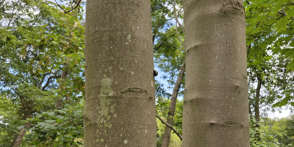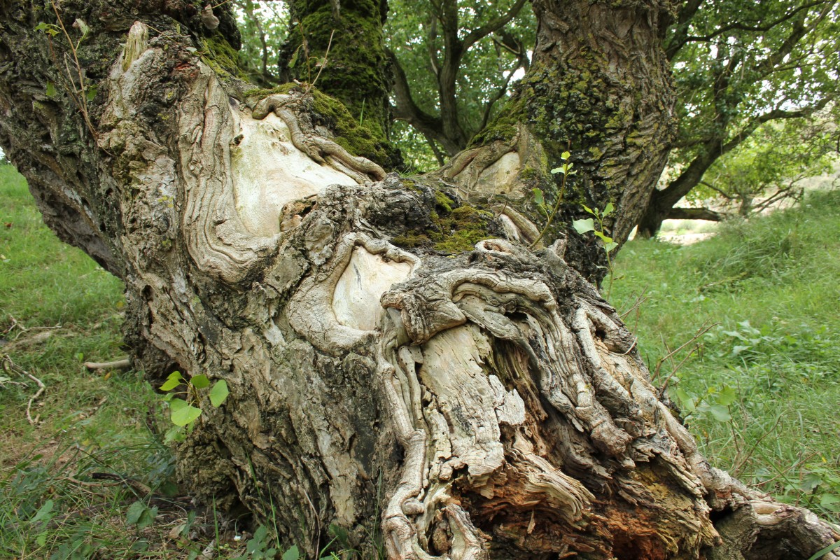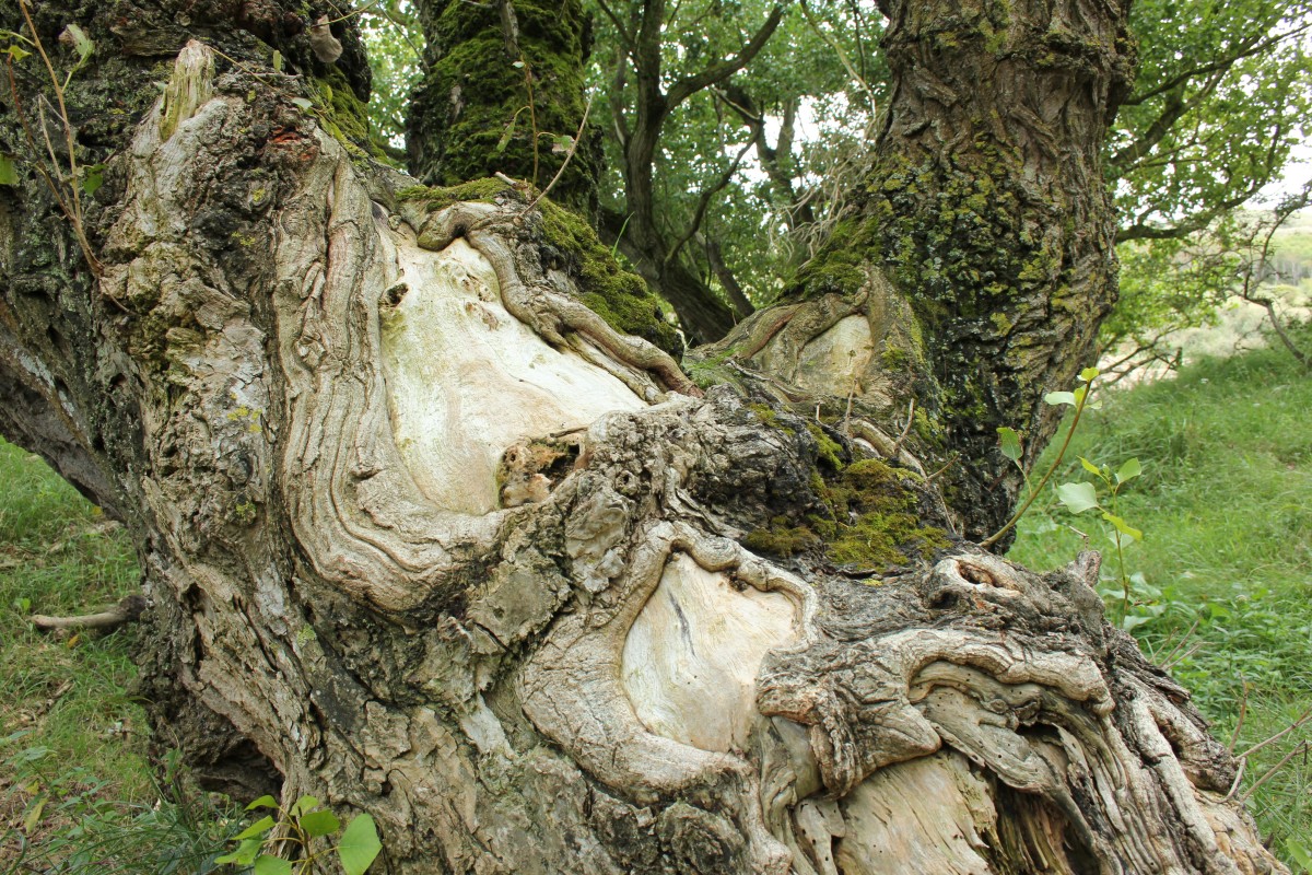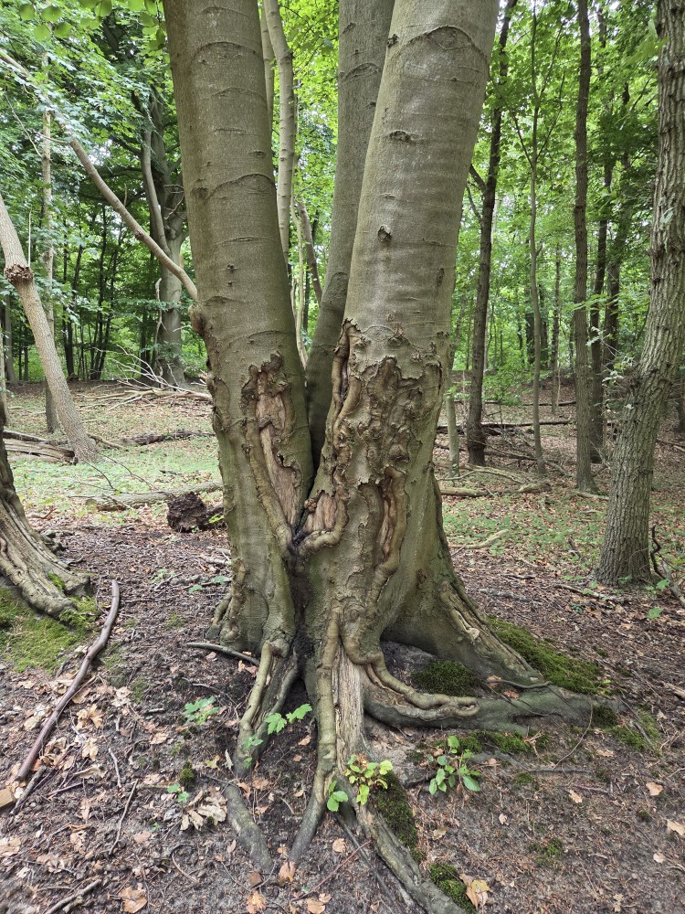 This tree’s bark (and the one before it) has healed from its damage in a way that looks like it’s full of squiggly tubes. Photo by MH