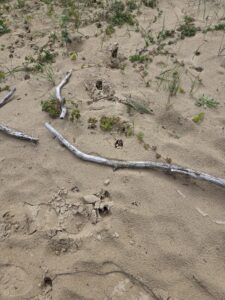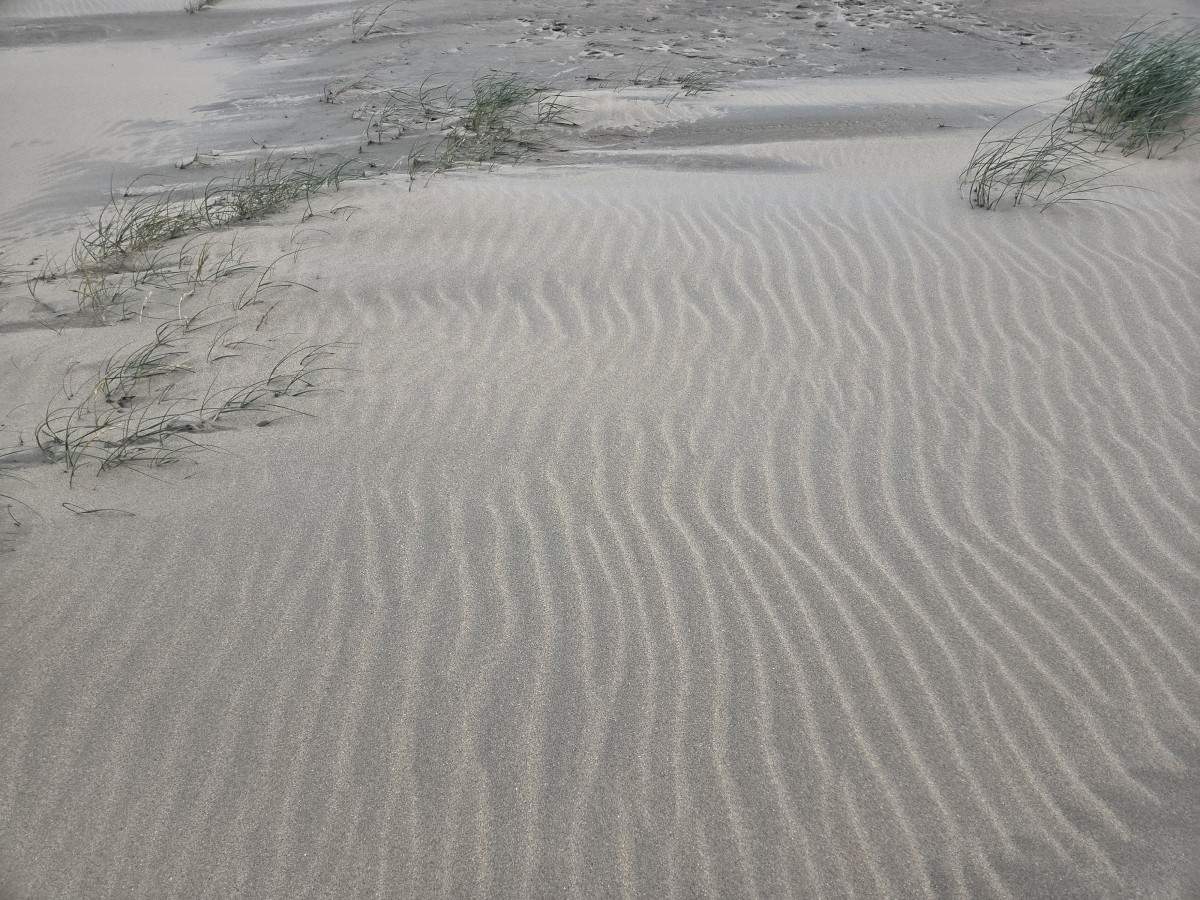 The roots of the grasses were covered in small snails. Having an orgy, I guess, they seemed really anchored and immobile though. From a distance it looks like dead macaroni. Or zombie macaroni. We saw a ton of clusters like these along the path right up to the last dune.