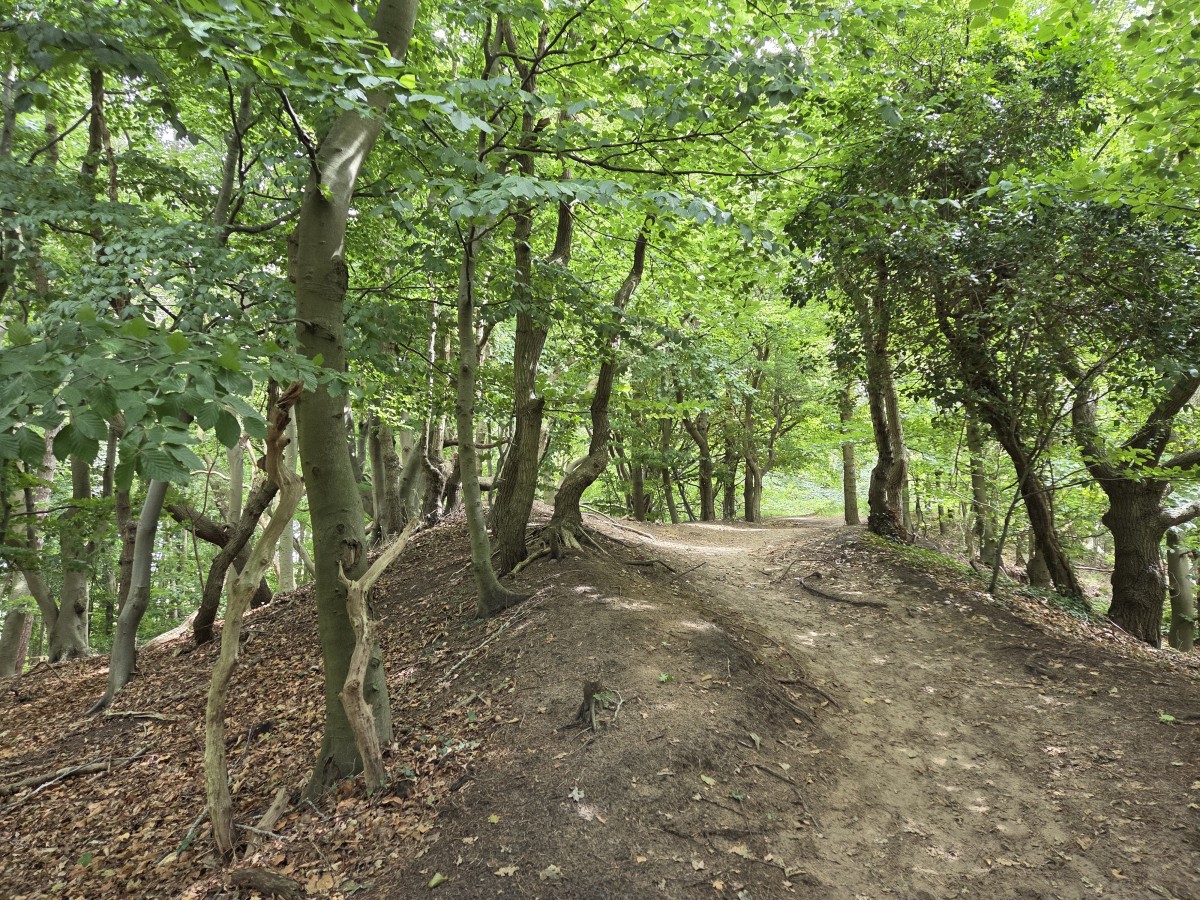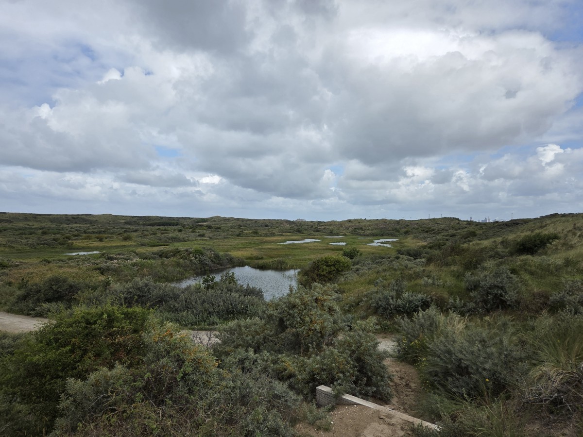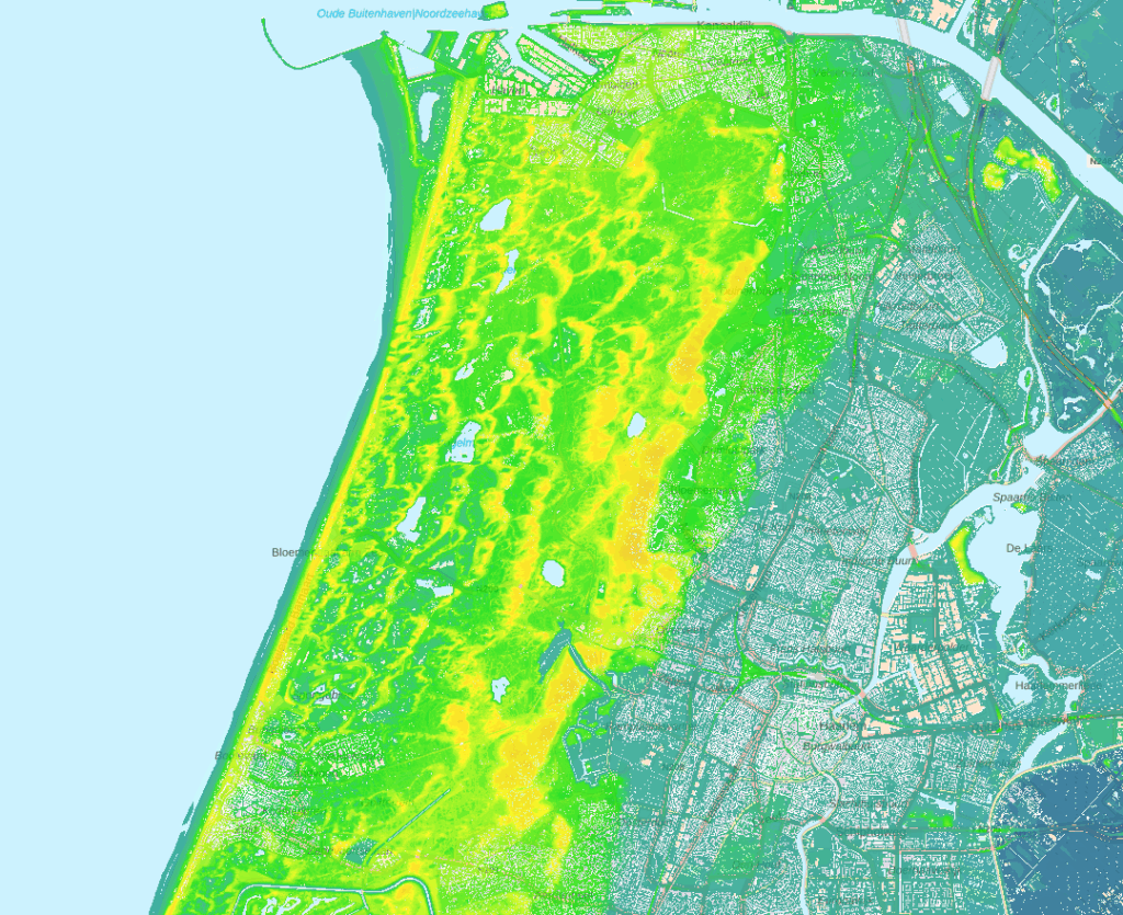 I screenshotted a close view from the topography webpage. The urban area is Haarlem, and we walked from the train station of Santpoort-Zuid (just north of Haarlem) to the coast and back.