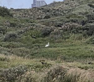 Here we settled down for lunch. And we were almost done, I was eating half of a raisin bun when suddenly something violently yanked on it. I’d been divebombed by a seagull who came in over my left shoulder, between me and Tharash, and yoinked it. I forgot that seagulls 1) live by the sea and 2) steal food, so for a half-second I actually thought that Tharash REALLY wanted my bun for some reason.