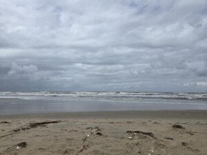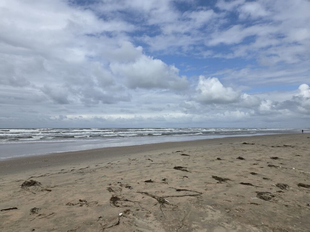 And it chomped part of my finger, so I was bleeding a bit. I washed it off with my water, squeezed it a bit to try and bleed any invading bacteria out, and I didn’t have a bandaid but I did have medical tape (for mask purposes) so I used that. Rather exciting. I cursed out the seagull and its brethren who were watching us to see if they’d have a chance of more food. And then we went to look at the ocean and the clouds.