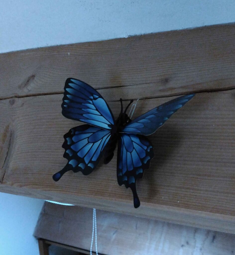 The butterfly also comes with a stand, if you want it to sit on your desk.