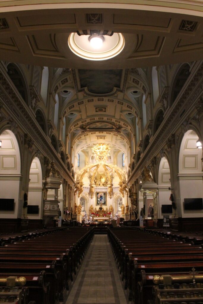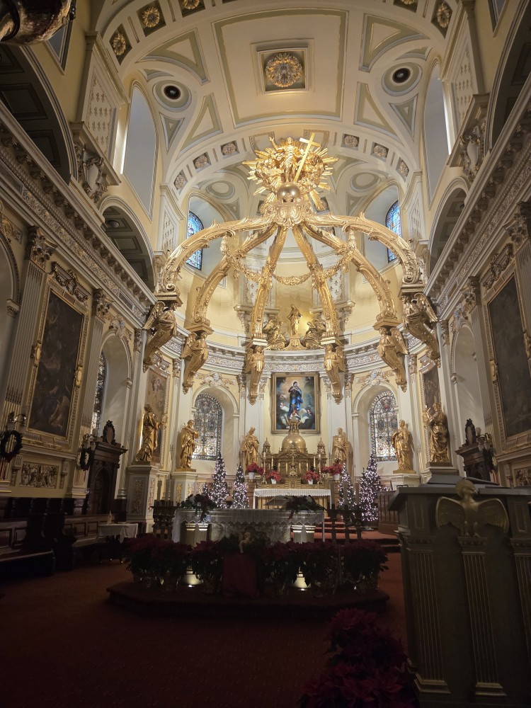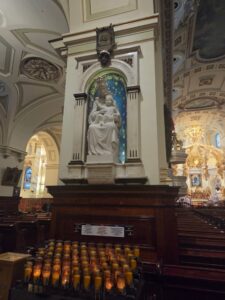 I was starting to notice signs of sickness, my throat was starting to feel scratchy, so when we went out in the evening to walk around and see all the pretty lights, I also dragged Tharash off so I could buy Robitussin from the only pharmacy in walking distance that was still open. I got extra-strength and also a pack of Halls. At least we walked past a nice church before going back to walk around the upper city again.