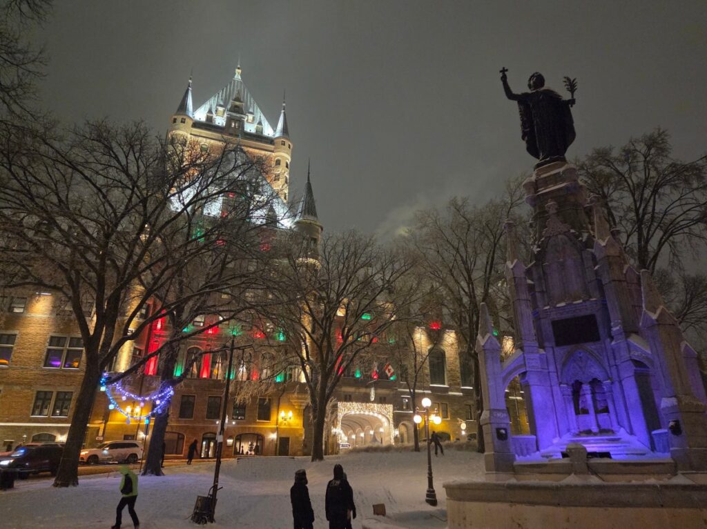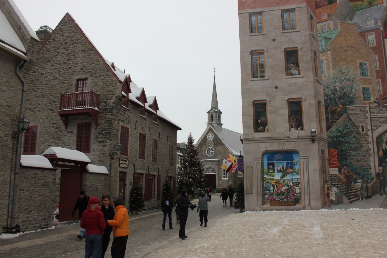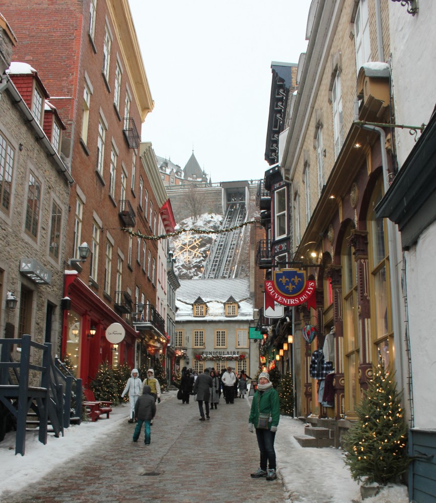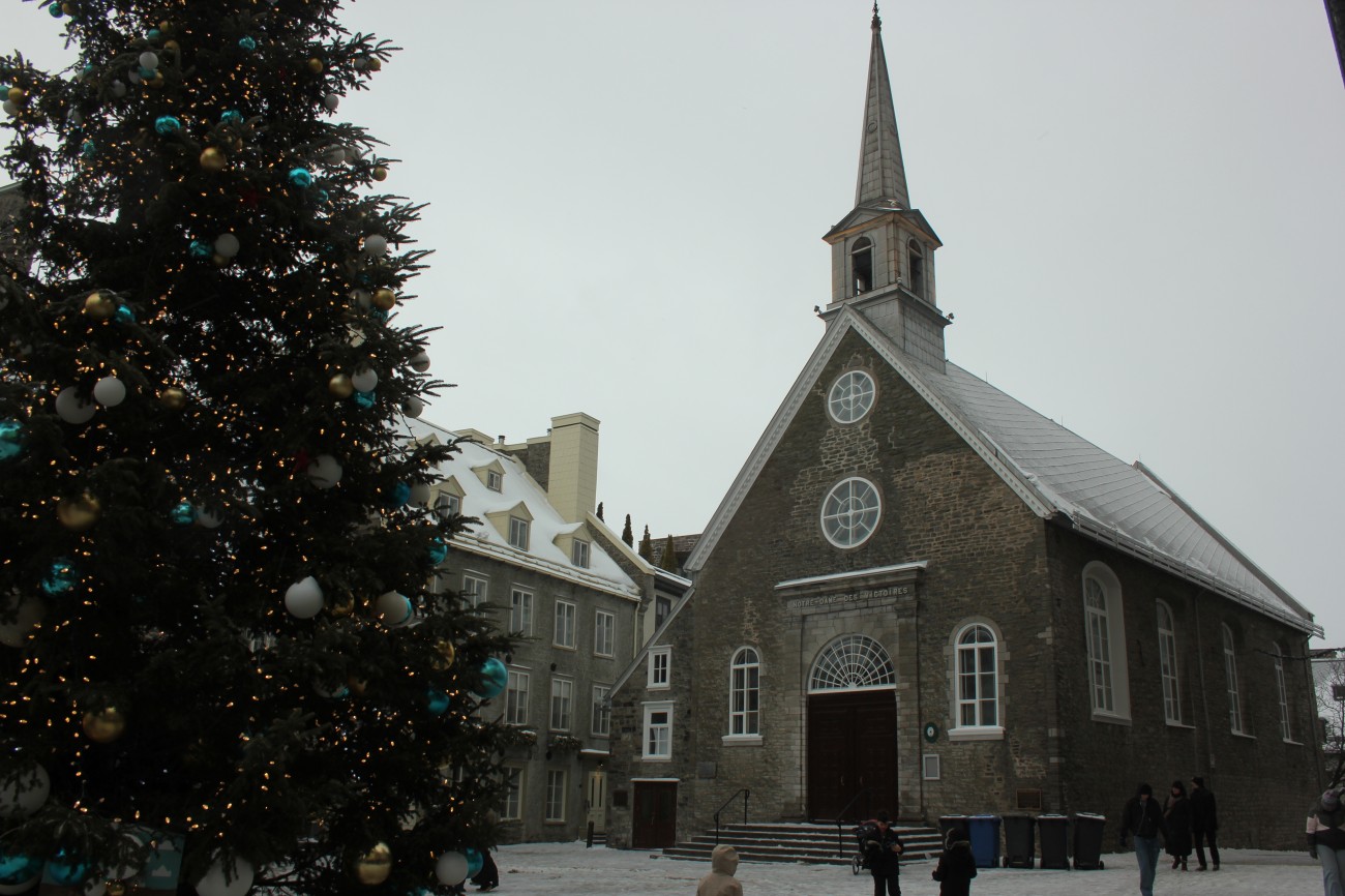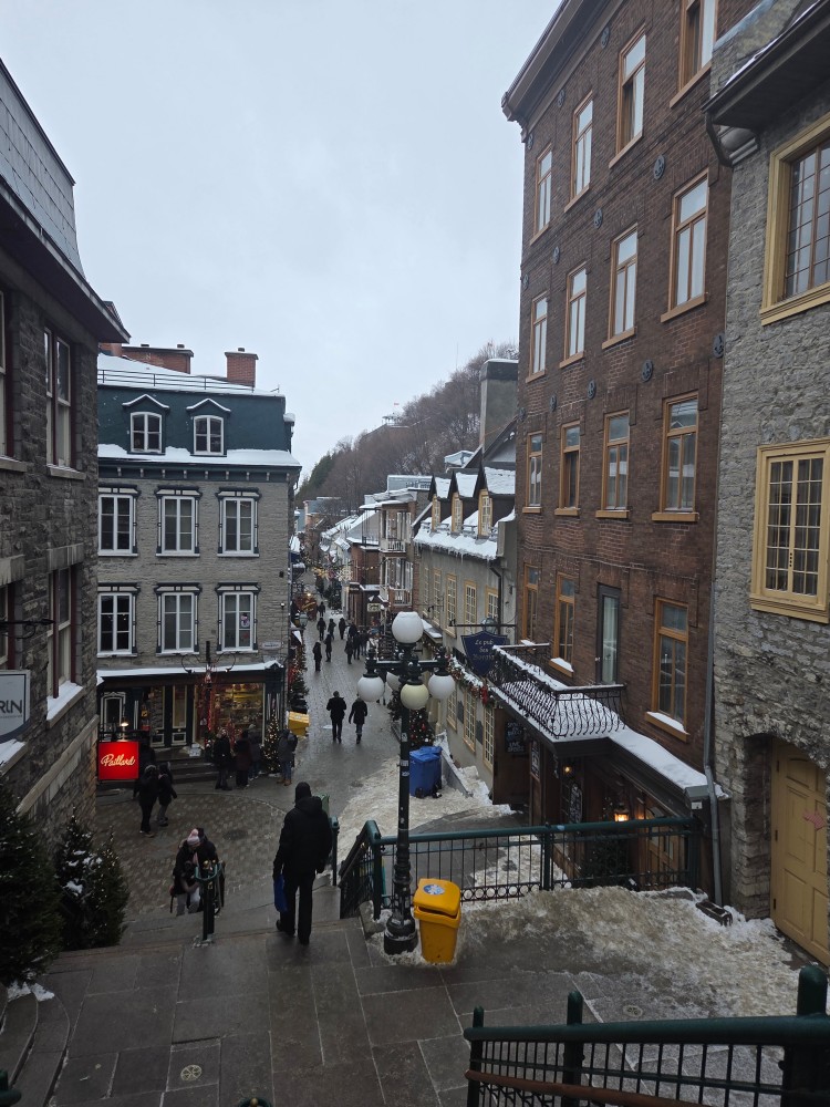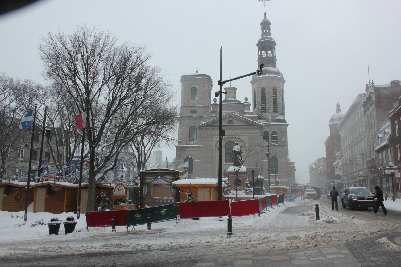 Dec 29 – I slept a bit better that night. The sick people were gone for one thing (though the damage had been done). We had grocery store bagels for breakfast with red pepper hummus and havarti cheese and cucumber. The toaster had one slot broken so Tharash nearly set one half of his bagel on fire. The weather wasn’t that bad, so we went to the lower old town, stopping in on the way at Notre-Dame.
