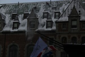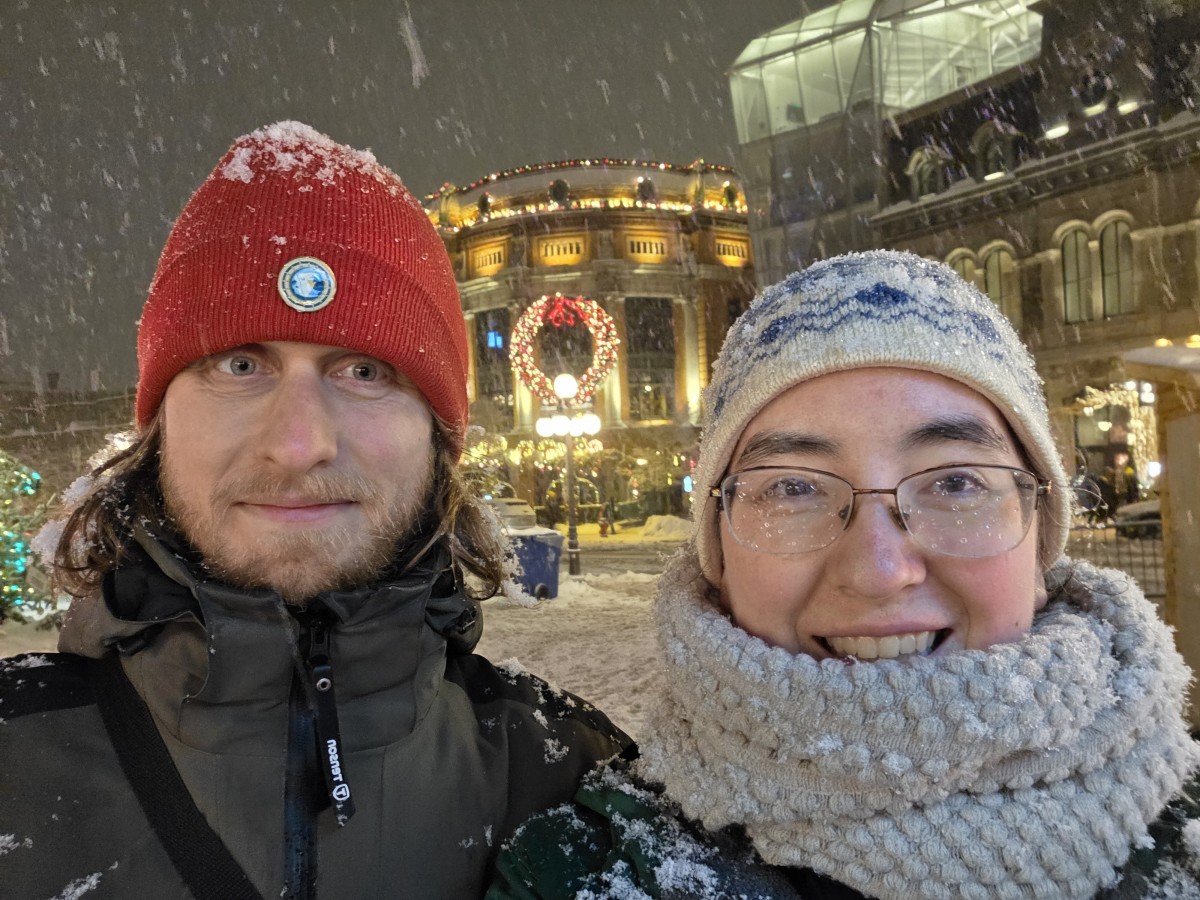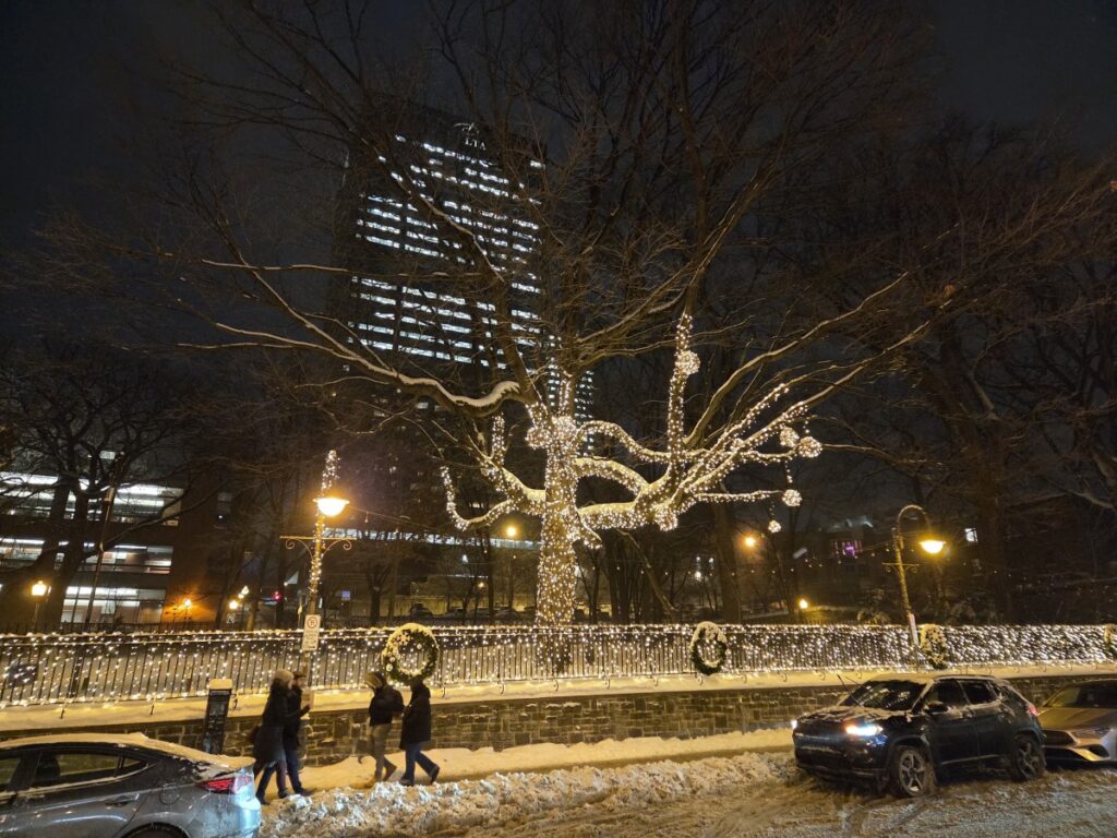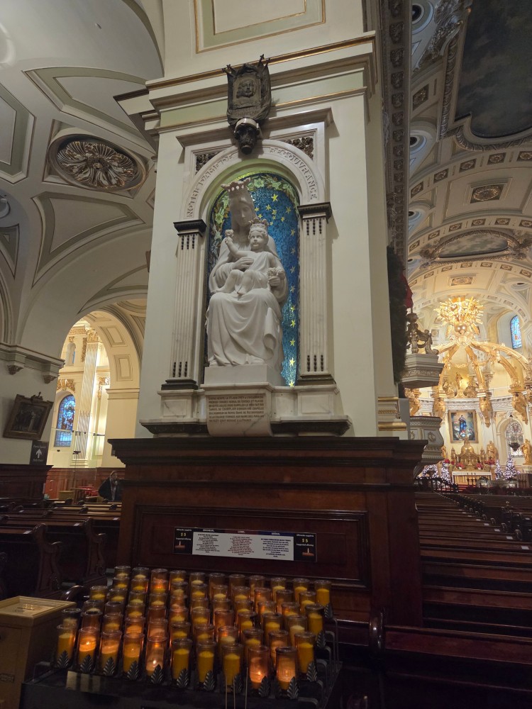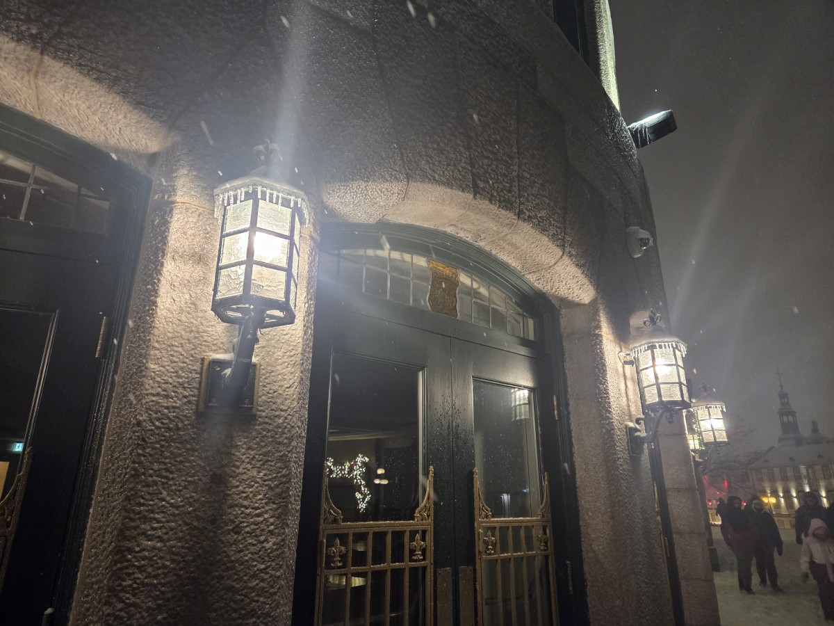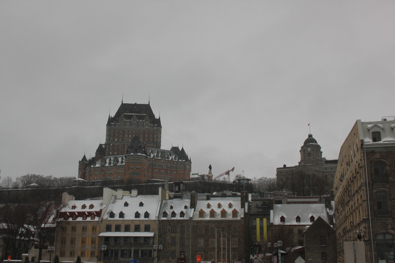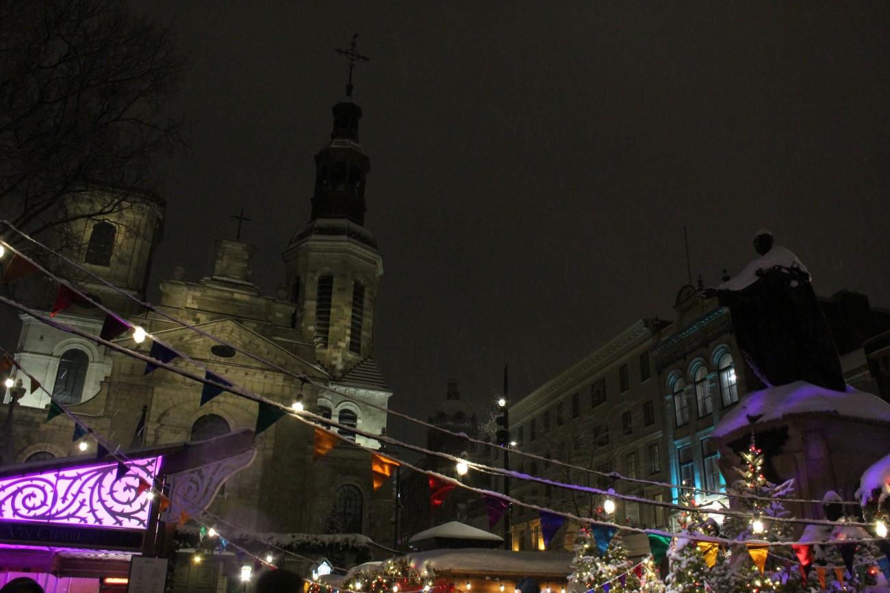 Dec 29 – I slept a bit better that night. The sick people were gone for one thing (though the damage had been done). We had grocery store bagels for breakfast with red pepper hummus and havarti cheese and cucumber. The toaster had one slot broken so Tharash nearly set one half of his bagel on fire. The weather wasn’t that bad, so we went to the lower old town, stopping in on the way at Notre-Dame.