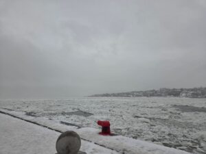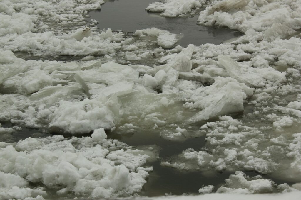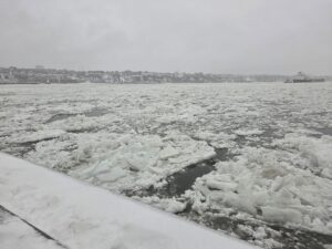 Then we went down to a pier on the river and looked at the ice floes drifting slowly by, and contemplated what would happen if we fell in.