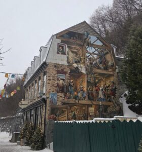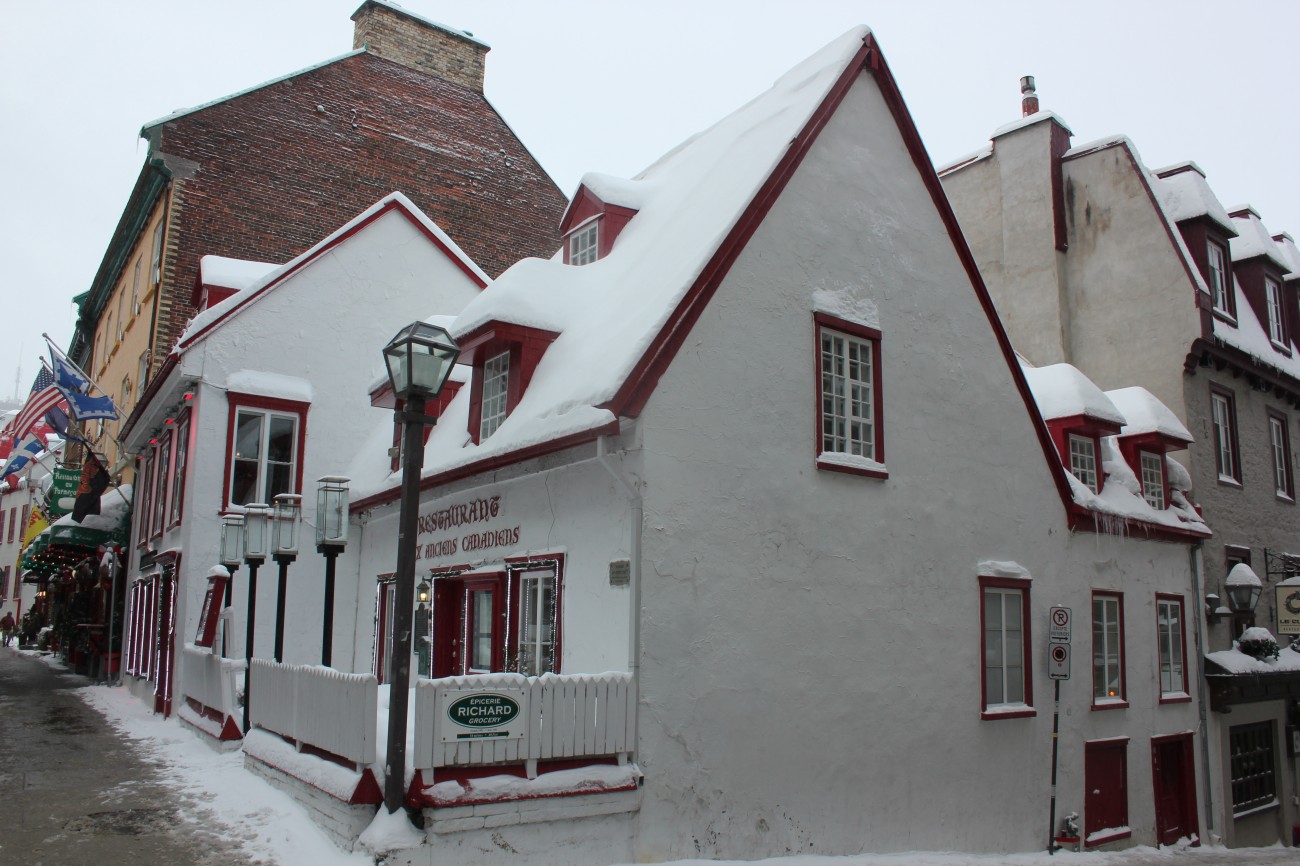 But we didn’t fall in, and went back to the tourist shopping street, which was very slushy; stopped in at a woodcarving shop, where everything was 50% off, and unlike stone carving, actually within my budget – I bought a fridge magnet of a sugar shack. I’m sure it’s the sort of thing that can be dashed off in not much time – not compared to the gigantic polished wooden sculpture of an octopus – but it’s cute and doesn’t contribute too much to the clutter in my life. The guy was kind about my attempt to speak French, too.