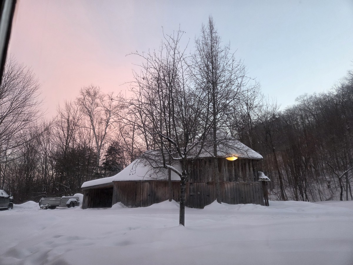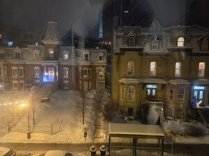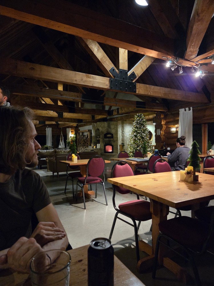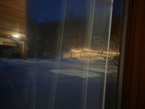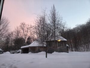 Back on the road, we listened to Visions of Atlantis’s Deep and the Dark album, and then Tharash put on Unleash the Archers’ cover of Northwest Passage, partly because he was wearing his Northwest Passage shirt. And then we were more or less in Rawdon, our destination. We stopped at a grocery store to get food so we wouldn’t have to go out for at least a day; I accidentally parked in a traffic lane because it was so busy and slushy that I couldn’t see the lines on the ground, but a considerate person pulled up next to me to explain that I was incorrect.