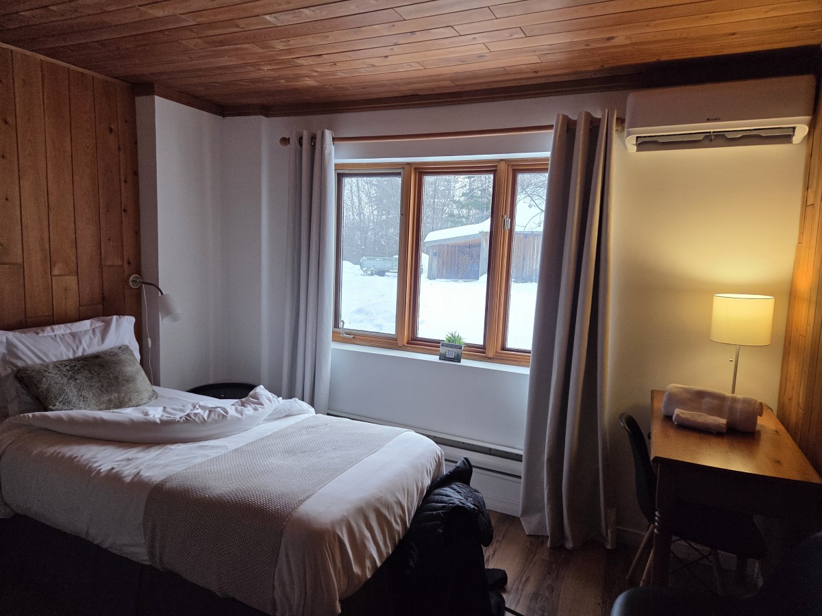 At the car rental place, there was only one poor guy working the car rental desk, and a whole bunch of people came in after us. He was going to be busy for a while. He commented on my phone number, which has a number of 6’s in it but not all together – he deliberately got his own phone number with 666 in it because he wants to be metal, I guess. Anyway, the other guy got the car out of the garage for us, which would be great except I got behind the wheel and had no idea how to put it in drive. Then another car came up behind us and I started panicking until the guy came back and explained I needed to be holding the brake in order to shift – duh, in retrospect. Driving out of Québec City was actually pretty easy, the main highway west is only a block away and and then you just keep going.