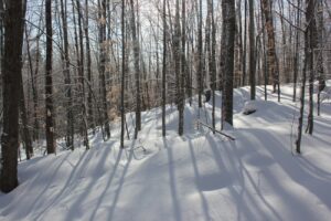 This hill is quite steep behind the building. Tharash has an open-source map app, and he let the GPS track him so that it would map the trail. Photo by MH